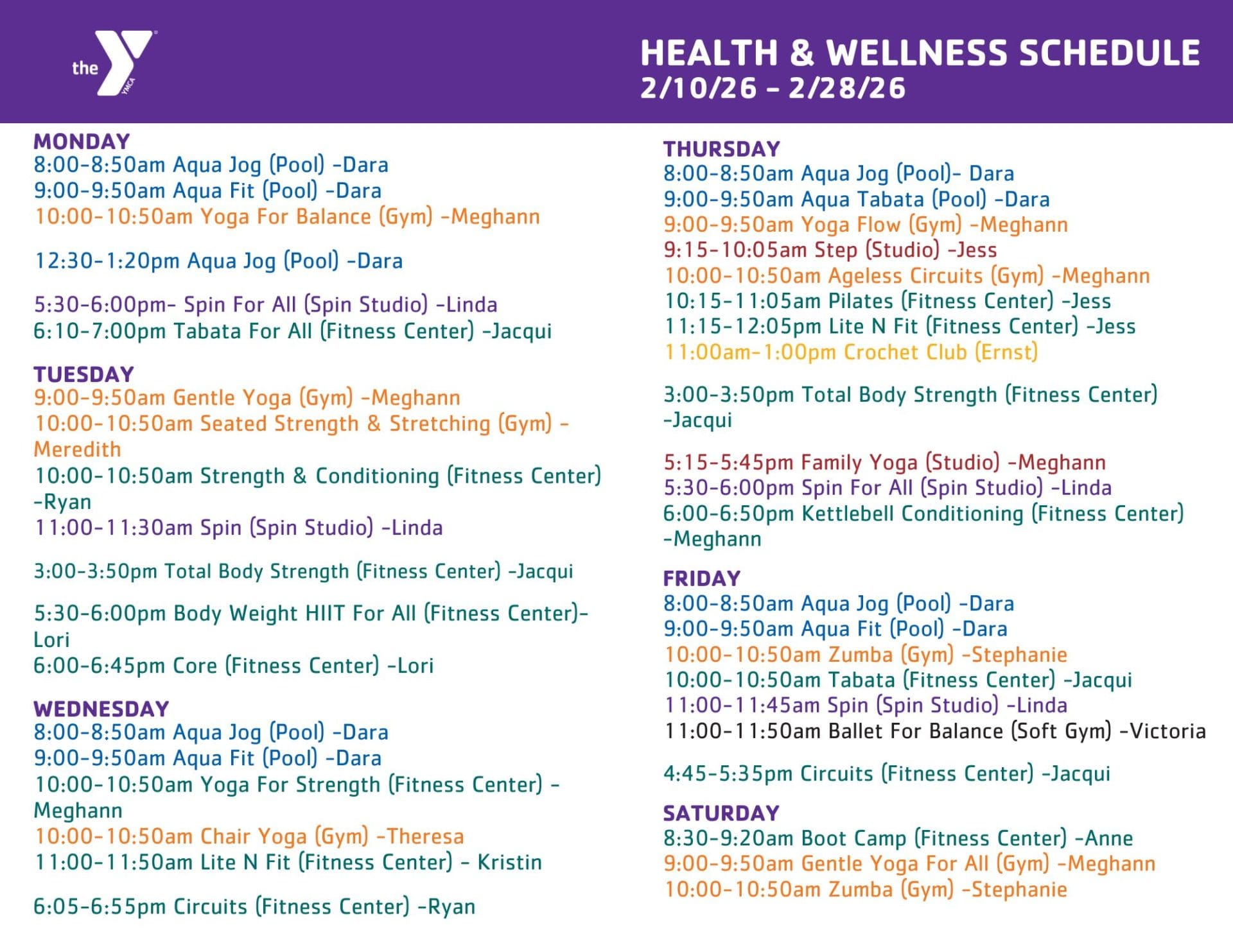 Facility Calendar by Room– View class locations, as well as basketball and pickleball court availability.