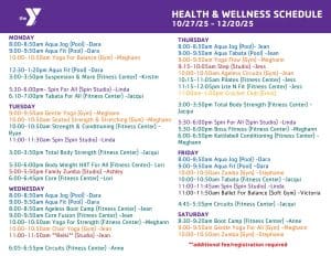 Pool Schedule– Member Swim Lane availability is posted for the current and following week.